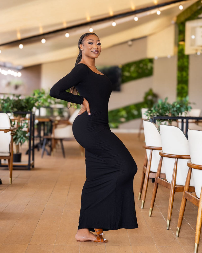 Made with a built-in-shapewear, the Faiza Maxi Dress is a wardrobe staple! Step out in style as you show off your curves in this square neck-lined all season number!